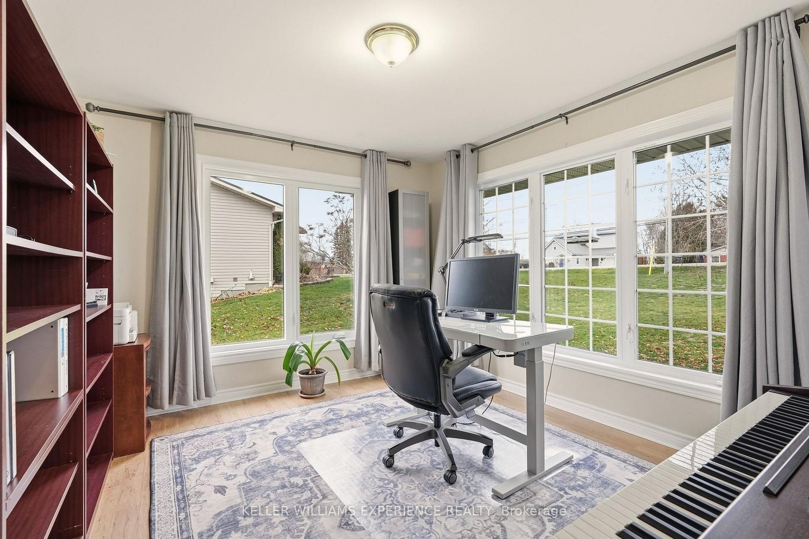 ESTATE BUNGALOW - HOME OFFICE - IN-LAW SUITE - WALKOUT BASEMENT - HUGE PRIVATE YARD. Welcome to 107 Simcoe Road - a rare, beautifully designed estate bungalow that blends modern efficiency with natural serenity. Set on an country lot backing onto private woodland and a creek, this home offers exceptional space, comfort, and thoughtful craftsmanship.Inside, wide hallways and birds-eye hickory hardwood floors lead to spacious bedrooms (2 up, 2 down), creating a floor plan that works for families, downsizers, and multigenerational living. A front office at the entry is ideal for professionals or a home-based business. Vaulted ceilings and large south-facing windows flood the main level with warm natural light. The open kitchen features abundant cabinetry and pantry storage, overlooking a dining area with walkout to a large deck and peaceful, manicured yard - perfect for everyday relaxation or entertaining.The main floor also offers a generous living room, two large bedrooms including a spacious primary suite with walk-in closet and 3-piece ensuite, a convenient main-floor laundry room, and inside access to the garage.The fully finished walkout basement contains an in-law suite re with its own kitchen, bright living area, private entrance, and two additional bedrooms - an excellent setup for extended family or added lifestyle flexibility. Valuable upgrades include a strengthened aluminum-shingled roof with an approximate 50-year lifespan, a Hydro One solar contract with an estimated $45,000 remaining return, a rubber-paved driveway, and a new water heater. An oversized double garage and large backyard shed offer abundant workspace and storage, while the partially fenced yard is a great space for pets.Freshly painted, meticulously maintained, and surrounded by friendly neighbours, this property is truly move-in ready. Enjoy peaceful living, energy savings, and the comfort of a welcoming community - all just steps from Lake Simcoe's shoreline in beautiful Ramara.